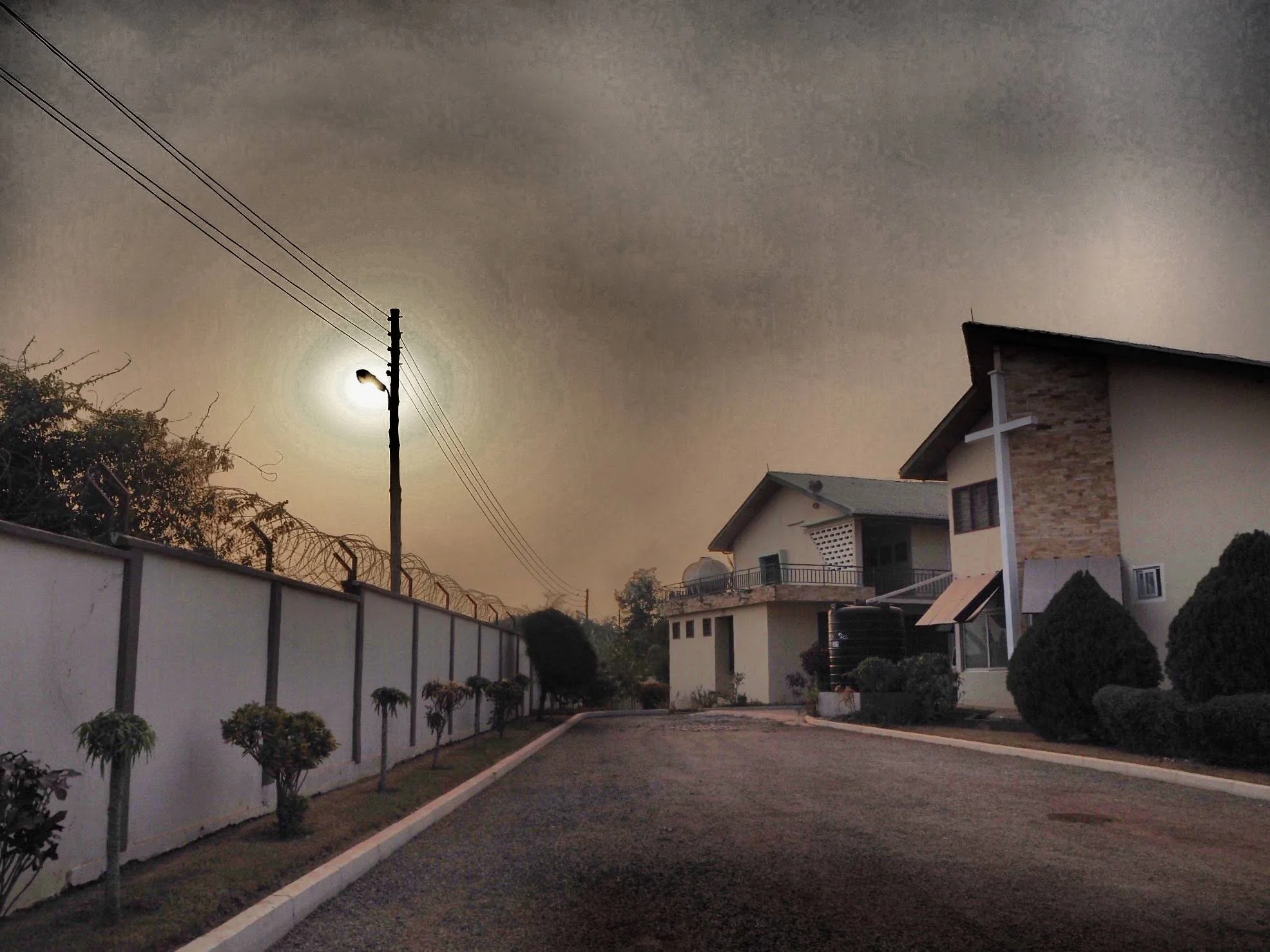 deep drainage channels are concreted on the roadside. in the rainy season from late march to early november, it rains heavily at times, so that many road connections can be interrupted by flooding or damage to the roads. in jachie, a place with several thousand inhabitants, there is a central wash house, the residents can collect water centrally with a canister, most residential buildings have no water and sewage connections. there is electricity and some satellite dishes, and often there are no windows in the houses that are in an perpetually unfinished state but are inhabited nonetheless. there is a town hall for the village administration, a chief, and a council of village elders.